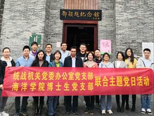 2021年11月17日下午,统战机关党委办公室党支部及海洋学院博士研究生党支部全体党员开展第一次联合主题党日活动。全体党员前往南宁市邓颖超纪念馆,近距离参观学习“南宁的女儿”邓颖超同志波澜壮阔的人生经历和革命情怀,进一步增强党员同志的时代使命感。
