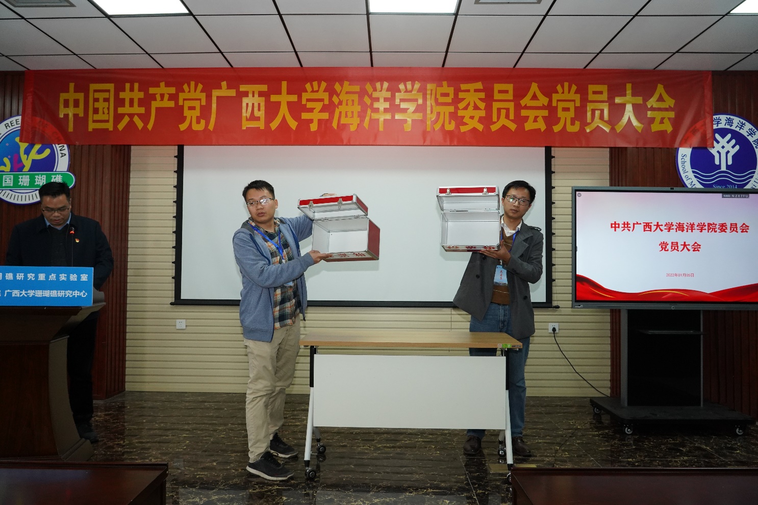 在庄严的《国际歌》声中,中共广西大学海洋学院委员会党员大会圆满完成各项议程,胜利闭幕。随后,新一届党委和新一届纪委分别召开了第一次全委会议,选举谭运阳同志为新一届党委书记,朱迅成同志为新一届党委副书记;朱迅成同志为新一届纪委书记。