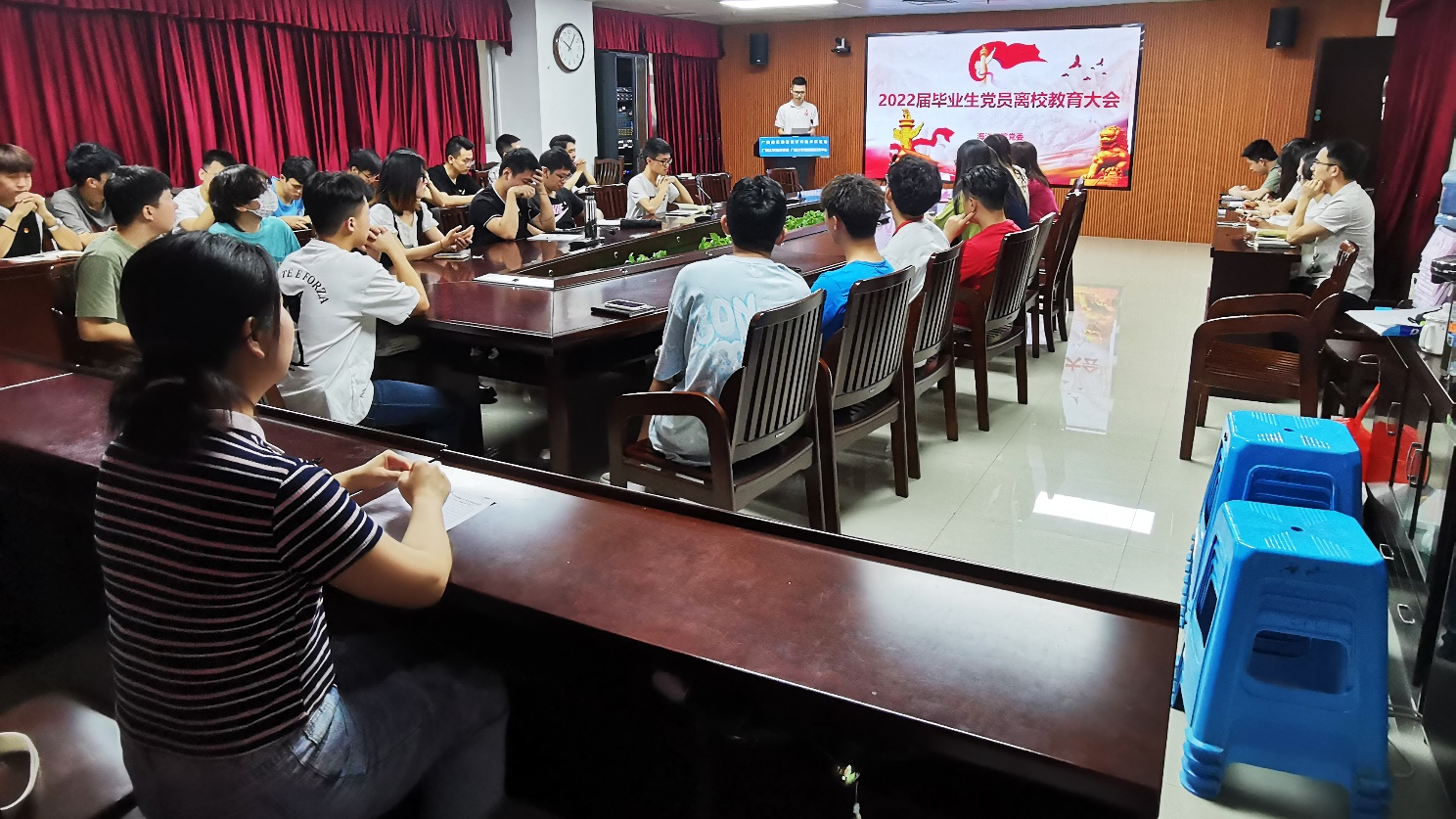 为做好我院2022届毕业生党员离校前有关工作,进一步提高毕业生党员党性意识和组织观念,引导毕业生党员保持先进性,发挥模范带头作用,争做新时代优秀党员。2022年6月13日上午,学院党委在综合楼1104会议室召开了2022届毕业生党员离校教育大会。学院党委副书记朱迅成同志出席会议,学院全体毕业生党员参加了会议,会议由学院组织员林玉华主持。
