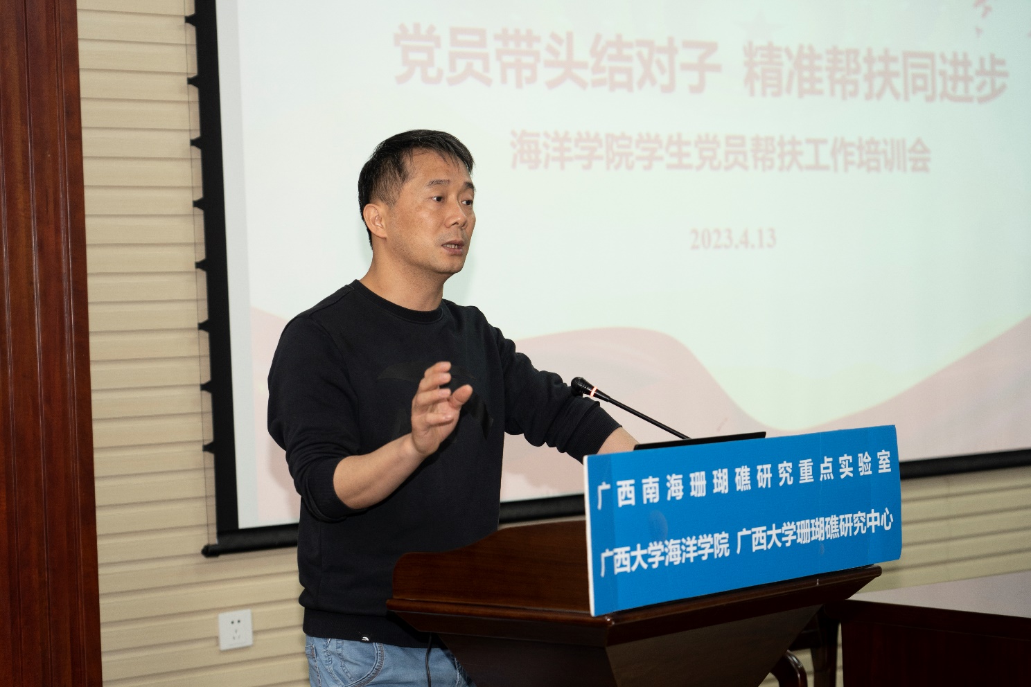 为了践行党的根本宗旨,持续和深入地做好我院的党建品牌——“党员一对一帮扶学困生”工作,让党员帮扶学困生工作取得实效,我院党委于4月13日下午在综合楼215教室召开了以“党员带头结对子 精准帮扶同进步”为主题的学生党员帮扶工作培训会。会议由党委副书记朱迅成主持,专职组织员林玉华老师及全体有帮扶任务的学生党员参加了会议。