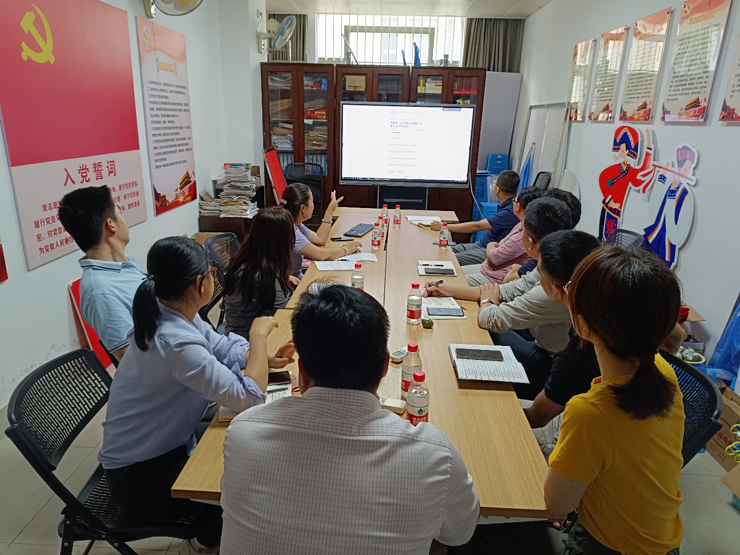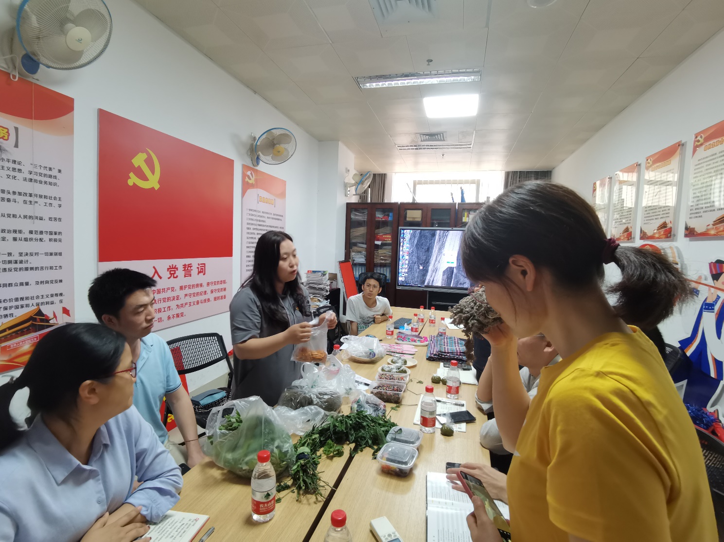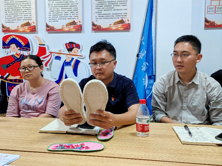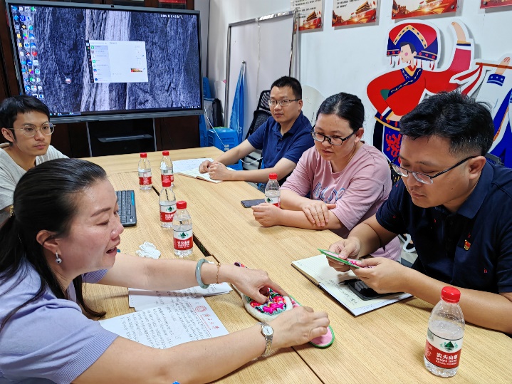 在分享会上,罗兰花主任给大家带来了精彩纷呈的演讲。她是土生土长的西林人,出身壮族家庭,从小就与养育她长大的那片热土和各族人民有着深厚的感情。大学毕业后,她直接回到故乡,长期扎根在少数民族地区基层一线,有着丰富的工作经历。她向大家分享了西林县的概貌、历史、文化、民族以及团结融合等有关少数民族的情况,也讲述了她如何与当地的各族人民一起完成脱贫攻坚、进行着乡村振兴工作。党员们通过聆听演讲、观看图片、欣赏壮语歌曲、触摸实物等方式收获了西林县少数民族的相关知识。同时,大家也在分享会上谈及自己的民族和文化。在愉悦的氛围中,大家都感受到了加强民族团结的向心力和凝聚力。