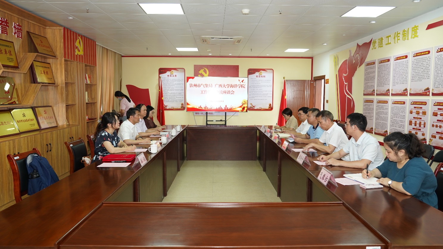 座谈会上,钦州市气象局党组书记、局长丘远锋介绍了钦州市气象局的基本情况、气象局在科学研究和人才培养等工作的主要措施和成效。朱迅成副书记介绍了海洋学院师资力量、教学平台、科研成果、人才培养等概况。双方就气象现代化监测网综合建设、野外台站实践教学基地建设、人才培养、人才招聘及科研工作开展模式等合作方式进行了探讨。