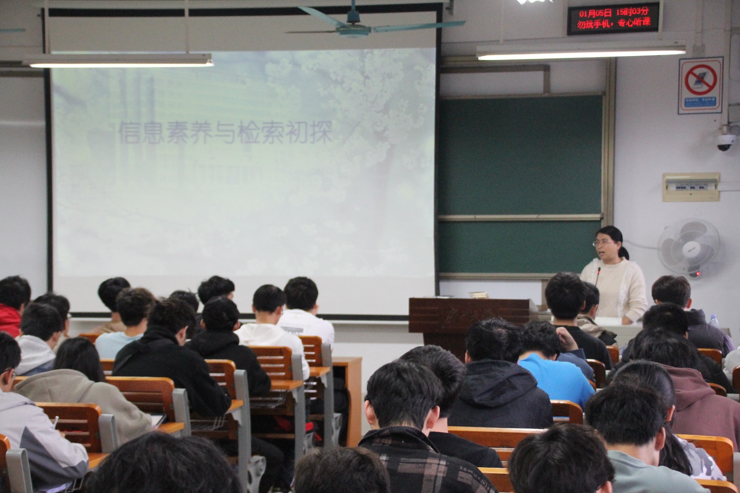 1月5日下午,广西大学图书馆信息服务与研究支持部郑羡老师为海洋学院的学生们开展主题为“信息素养与检索初探”的报告。报告旨在帮助学生了解信息素养的重要性,并掌握有效的检索技巧,以提高学习效率、拓展学术视野、激发创新思维。