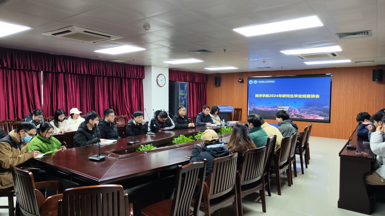 2024年1月23日下午,我院召开2024年学术型和专业型硕士研究生毕业班座谈会。座谈会围绕2024毕业生毕业工作各节点进行,包括:毕业论文相关环节的时间截点通报、详细摸底学生学术成果及毕业论文撰写进度、针对共性及个案的毕业疑问进行分析答疑、为面临毕业困难的学生制定针对性的帮扶方案。参会人员包括“海洋科学”专业毕业班研究生、“环境工程”专业毕业班研究生、延期毕业的研究生,会议由副院长梁甲元主持。
