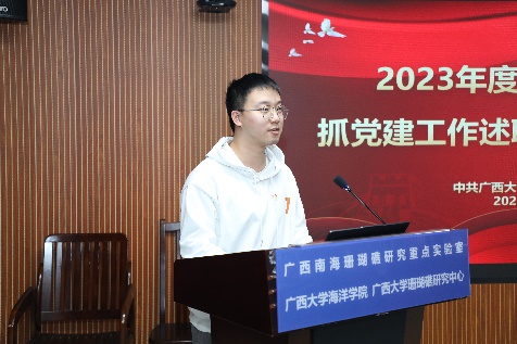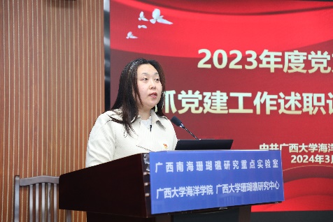 经党委会审议,海洋学院2023年度党支部书记抓党建述职评议结果为“好”的等次的是行政与实验党支部书记林玉华、学生党支部;结果为“较好”等次的是生物与生态党支部书记梁甲元、环境与地质党支部书记王瑞、硕士研究生第一党支部、硕士研究生第二党支部、博士研究生党支部。(林玉华/文 周剑/图 周剑/编辑 秦华东/审核)