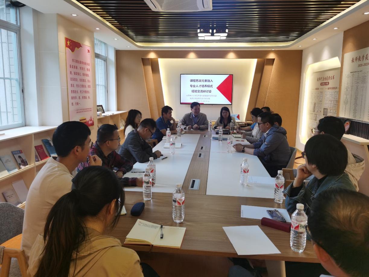 随后,大家就交流主题进行了交流研讨。我院黄荣永、雍阳阳、韦芬、俞小鹏、江蕾蕾等老师分别就自己在教学过程中的困惑等提出了相关问题,马克思主义学院的老师也以部分专业为范例,就专业课教师关注的课程思政的内容、融入方法、构成要素及实施过程中的痛点难点一一做了回应。