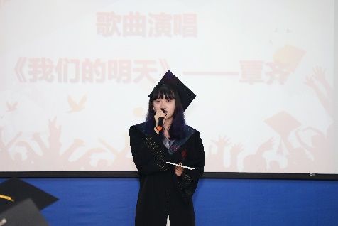 典礼伊始,悠扬的歌声飘荡在会场之中。2024届毕业生代表覃齐、刘子杰演唱《我们的明天》《去明天》,用歌声唱出自己对学院的深深眷恋与不舍。