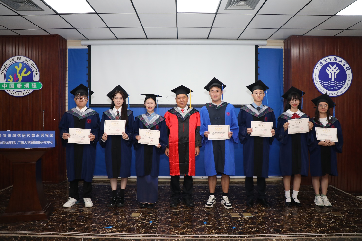 6月25日,广西大学海洋学院2024届学生毕业典礼暨学位授予仪式在学院215会议室举行。这是海洋学院第五届海洋科学专业本科学生、第三届海洋科学硕士研究生、第四届海洋生物资源与环境保护博士研究生圆满完成学业,即将踏上新的人生征程。