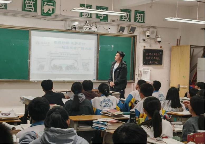 他们以自身经历为纽带,将广西大学的校园文化、学术氛围、发展机遇传递给学弟学妹们,激发他们的学习热情与奋斗目标。通过精心准备的宣讲内容和真诚地互动交流,同学们不仅为中学学子点亮了前行的灯塔,也在传承知识与经验的过程中,深刻体会到青年学子在教育接力中的重要作用,展现了新时代大学生的责任与担当。