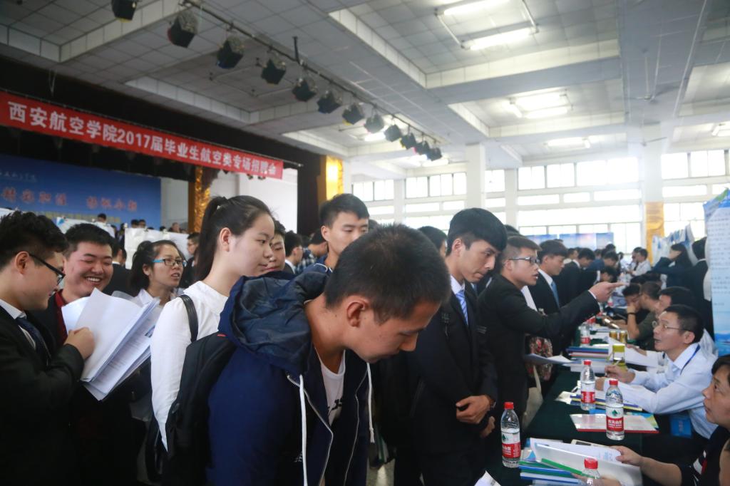 9月28日,我校2017届毕业生航空类专场招聘会在沣惠校区举行。来自庆安集团有限公司、沈阳飞机工业集团公司、中航飞机股份有限公司汉中飞机分公司、中航工业宏光空降装备有限公司等中国航空工业集团公司下属的近40家企业参会。同时,我校还邀请金胜通用航空公司,西安万钧航空动力科技有限公司等17家西安航空产业基地的航空类企业参会。招聘企业需求主要集中在飞行器制造工程,机械设计制造与自动化,交通运输,测控技术与仪器,电气工程及其自动化等18个工科专业,提供就业岗位1057个。本次招聘会是我校面向2017届毕业生启动的首场较大规模的招聘会,吸引了近4000多名毕业生到场应聘。