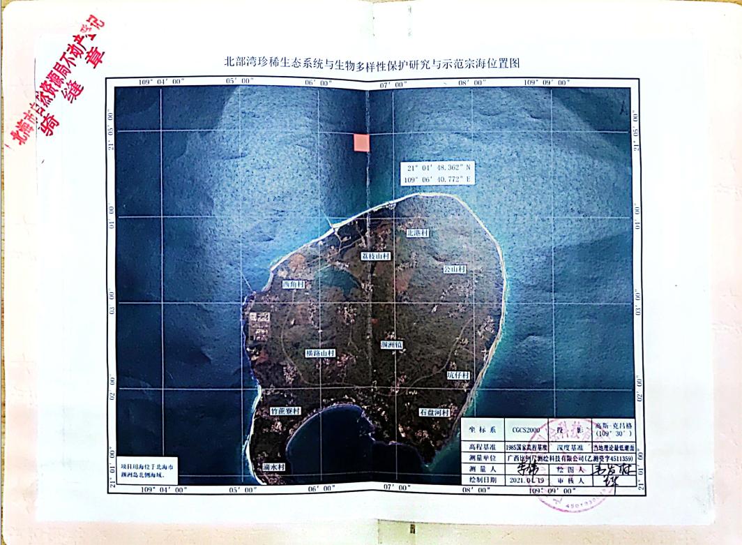基于我院在涠洲岛珊瑚礁生态修复工作中所取得的成效,北海市涠洲岛旅游区管理委员会、北海市海洋局等相关部门批复了200亩海域(涠洲岛北侧)给我院开展科学研究。近日相关审批手续已办理完毕,并获得了不动产权证书(编号:桂2022北海市不动产权第0015931号)。