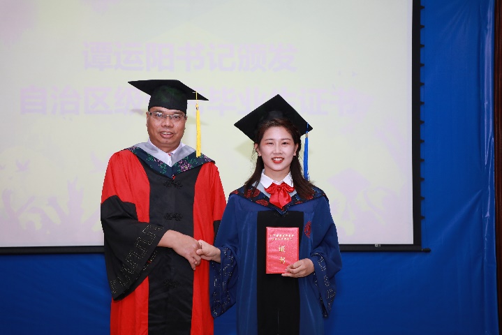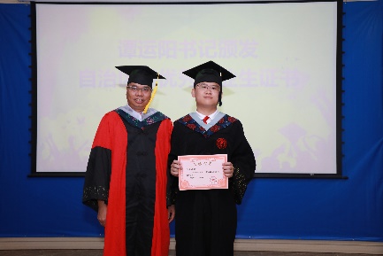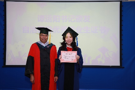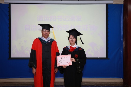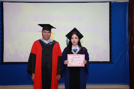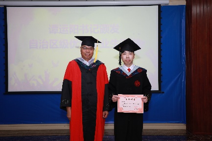 党委书记谭运阳颁发“2022年广西大学优秀毕业生”证书