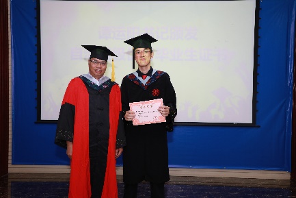 院长余克服教授逐一给毕业生进行拨穗礼、授予学位、颁发学位证书,并一一合影留念。