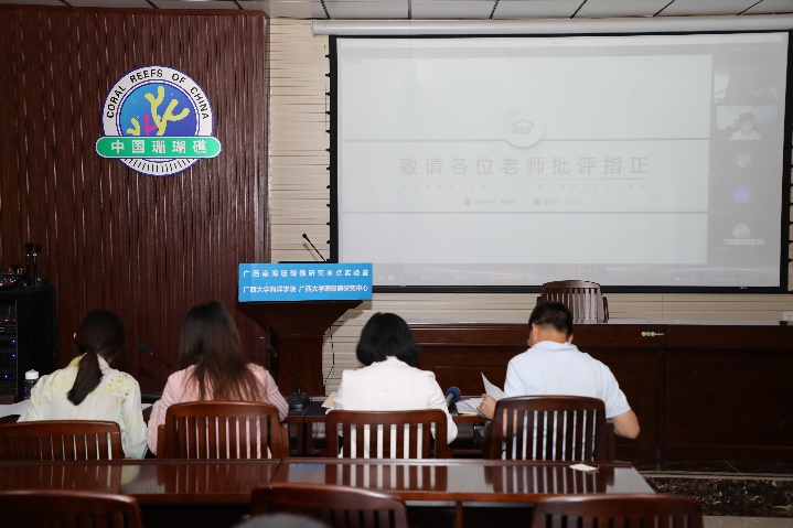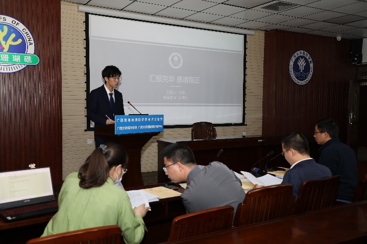 答辩按照海洋地质与环境、物理海洋与遥感、海洋生物与生态、海洋环境与化学等4个方向分组进行。每个答辩小组由3-5位答辩委员和1位答辩秘书组成。通过答辩小组严谨、认真的评审,海洋科学专业2020届所有学生均通过答辩,最终4篇论文被推荐并获得广西大学2022届本科优秀毕业论文。