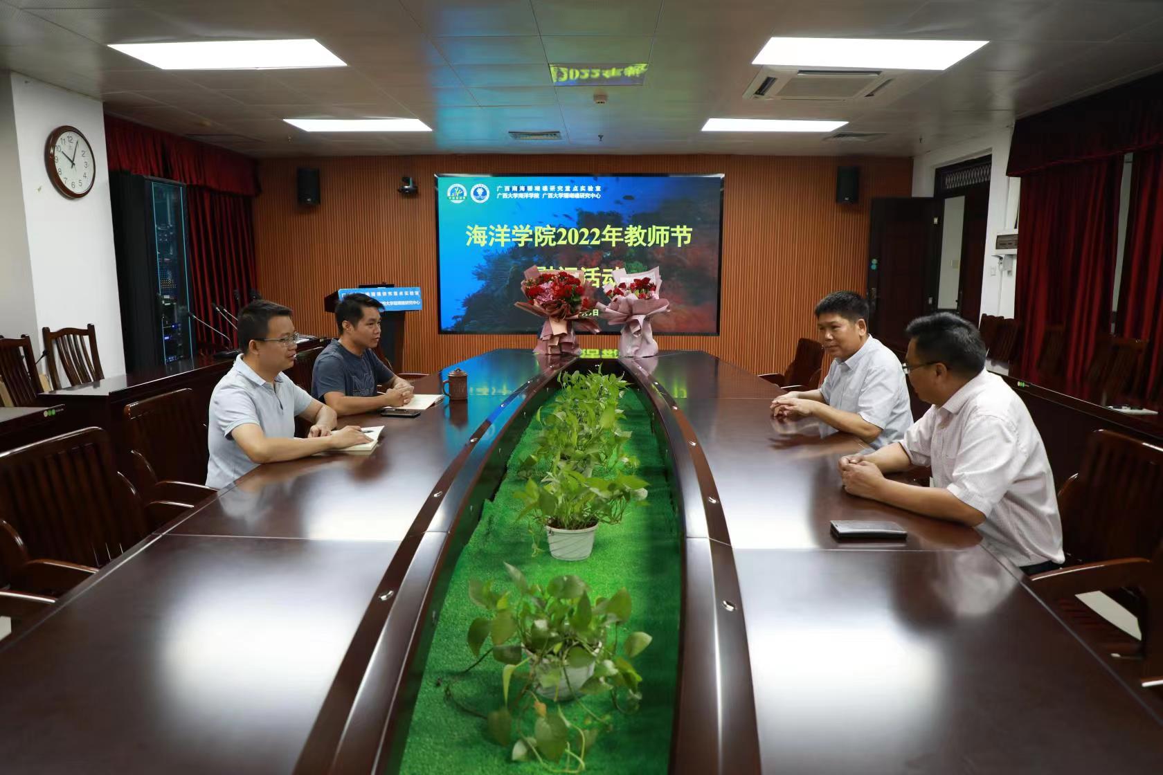 在第38个教师节到来之际,学院谭运阳书记、余克服院长看望慰问梁甲元博士、黄荣永博士,代表学校向他们送上鲜花和慰问金,并通过他们向我院全体教职员工致以崇高的敬意和亲切的问候。