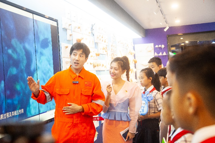 少先队员们通过沉浸式的体验活动,与海洋学院“蓝色梦想”海洋科考队员们面对面交流,近距离观察人工培育珊瑚技术等多种形式,了解了海洋科学专业的概况及其对社会的价值。在活动中,少先队员们与主持人积极互动,共同完成探索任务,在与科考队员交流过程中,表现出了对海洋科考的向往与憧憬;在惊叹珊瑚礁美丽之余,也对珊瑚礁生态系统面临的威胁充满了担忧。