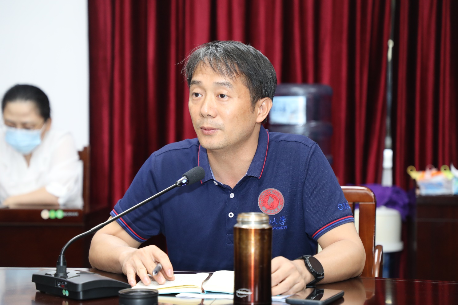 秦华东作总结发言,他简要总结了暑假期间学院完成的各项工作,通报了学院学习贯彻习近平新时代中国特色社会主义思想主题教育专题民主生活会的情况,并与大家一起认真学习了校党委常委、副校长肖建庄在民主生活会上点评讲话精神。传达了学校本科教育教学审核评估专家入校评估工作布置会会议精神,他强调,全体师生员工要提高站位,强化大局意识,要深刻理解新一轮本科教育教学审核评估的精神、内涵和要求,以高度的责任感把每一项工作做实、做细,确保任务和责任落实到人,拿出最好的工作状态,以实际行动向学校交出一份满意的答卷。