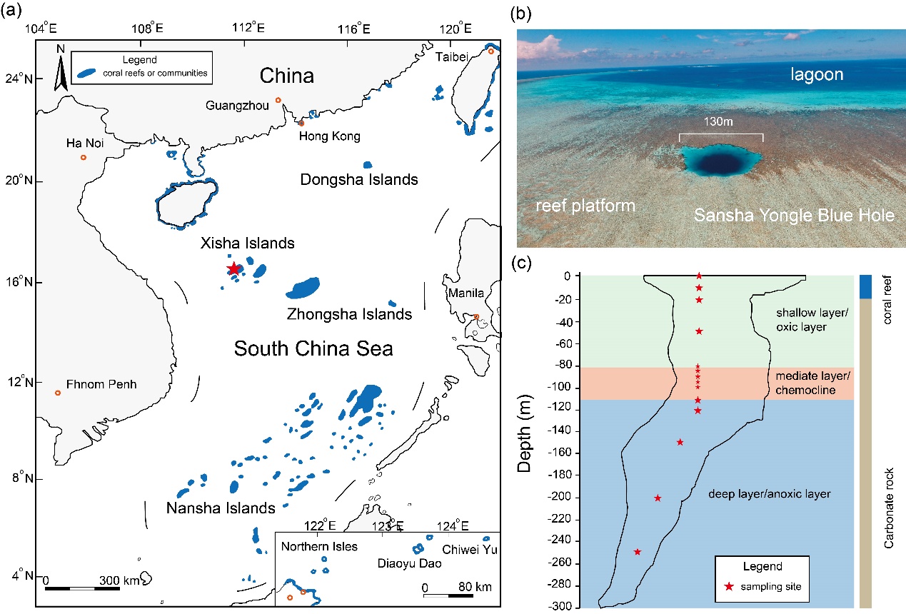 近日,我院海洋生物与生态教研室陈飚博士等在中国科学院一区Top期刊Microbiology Spectrum发表了题为“The diversity, community dynamics, and interactions of the microbiome in the world’s deepest blue hole: insights into extreme environmental response patterns and tolerance of marine microorganisms”的研究论文。该研究基于微生物组学技术,对西沙群岛珊瑚礁区的世界最深蓝洞—三沙永乐龙洞(300.89m)14个深度剖面的水体微生物进行了研究,解析微生物主要功能类群(虫黄藻、细菌、真菌以及古菌)在不同深度极端环境下的多样性变化、生态特征及其生物地球化学循环功能差异。