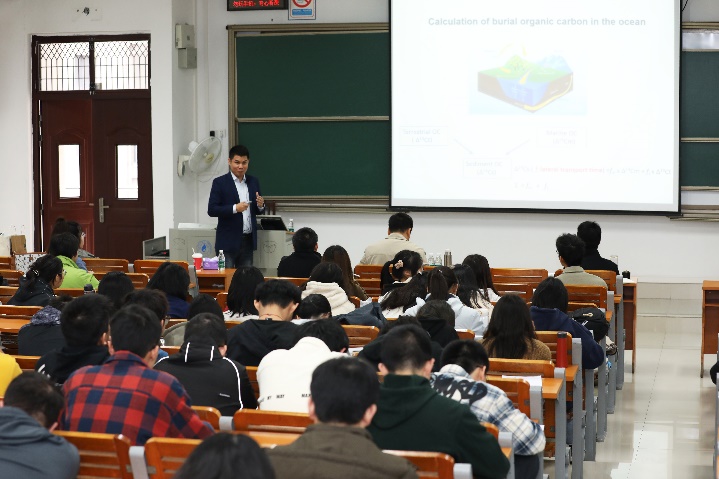 应我院院长余克服教授邀请,中国海洋大学海洋化学理论与工程技术教育部重点实验室副主任、中国海洋大学海洋碳中和创新研究中心执行主任包锐教授莅临我院开展学术交流。在海洋名师讲座“走进海洋,走进科学”为师生作了题为《Carbon Rolling in the Deep--海洋有机碳运移与埋藏:从陆架到深渊》的学术报告。讲座基于包锐教授多年在海洋有机碳的搬运与迁移方面的研究,让同学们对海洋有机碳运移的研究现状有了比较全面的了解。讲座由林武辉副教授主持。