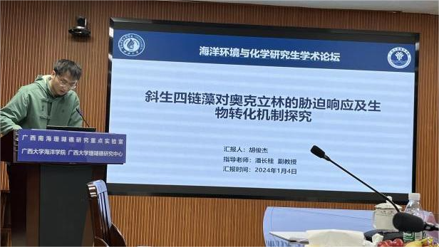 2024年1月4日,广西南海珊瑚礁研究重点实验室2023年度学术会议——海洋环境与化学研究生学术论坛在学院学术会议室顺利举办。论坛以线上及线下相结合的方式进行。