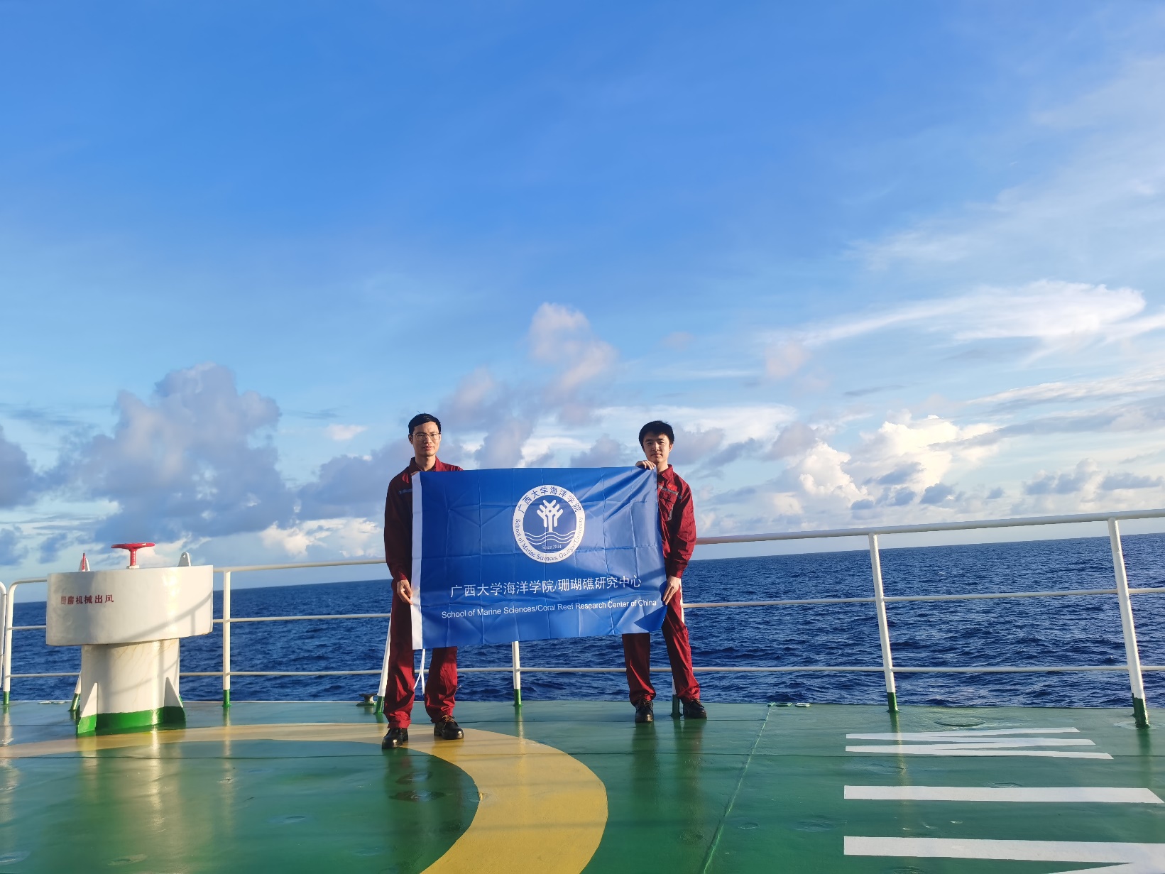 我院“蓝色梦想”科考队参加2023西太平洋基金委共享航次(左:覃祯俊博士、右:俞小鹏博士)