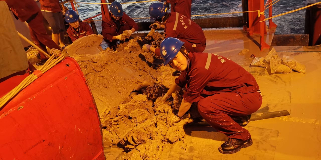 2023年西太平洋基金委共享航次深海沉积物采集作业(图右一为俞小鹏博士)