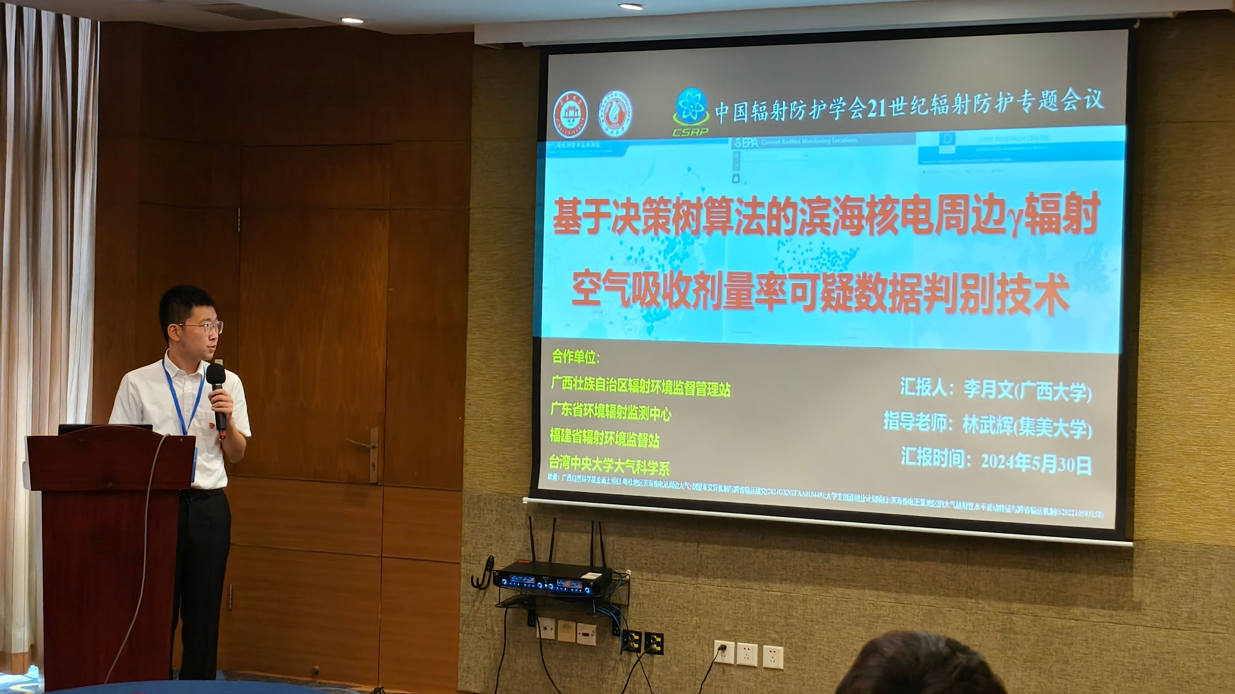 2024年5月28日至31日在上海举行的21世纪辐射防护专题会议(第二十二次)——人工智能、数字化在辐射防护中的应用会议中,我院2020级“海洋科学”专业本科学生李月文的口头报告“基于决策树算法的滨海核电周边γ辐射空气吸收剂量率可疑数据判别技术”,入选大会“辐射场与电离辐射计量”分会场。