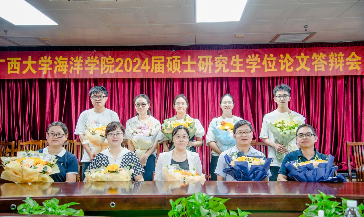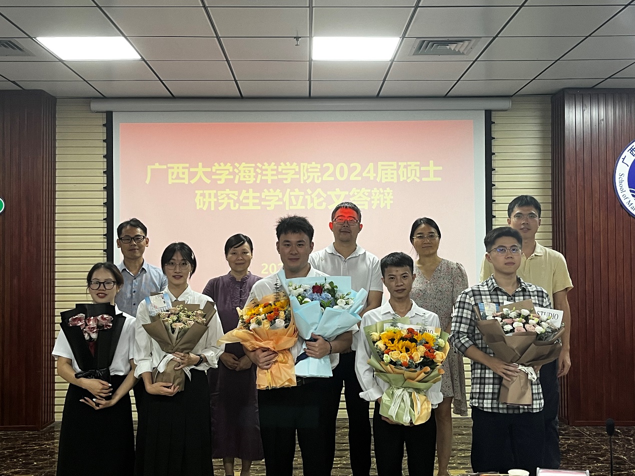 5月25日下午,王艺锦同学在综合实验大楼1022会议室进行答辩。广西大学资源环境与材料学院孙翔教授担任答辩委员会主席,山西大学孙海峰教授、中国热带农业科学院魏超贤副研究员、广西大学海洋学院黄爱国助理教授担任答辩委员会委员,广西大学海洋学院实验中心张威实验师担任答辩秘书。