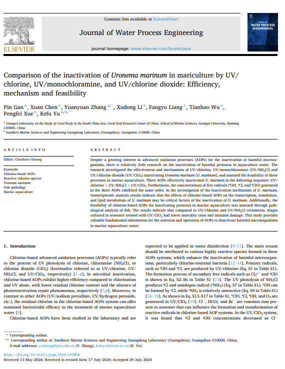 张媛媛副教授等基于新型高级氧化技术在海水养殖水消毒方面取得系列进展