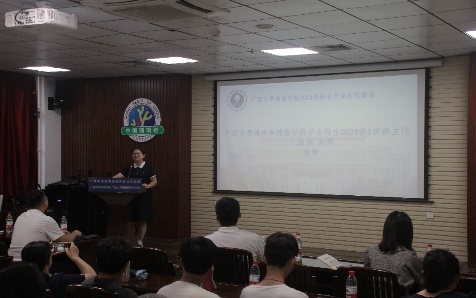 下午,我院在215会议室举办了2024级新生及家长见面会。会上,学院党委副书记黄学勇老师、学院副院长王瑞以及各班班主任向远道而来的新生及家长们表示热烈的欢迎,同时为大家介绍了学院的研究方向、师资力量以及就业前景,让大家对海洋学院的构成以及专业情况有了更深入的了解。随后,在海洋学院科普团带领下,新生家长们参观了学院的特色珊瑚养殖室以及海洋科教馆,通过志愿者的讲解,家长们对我院的专业特色以及学院概况有了更清晰的认识。