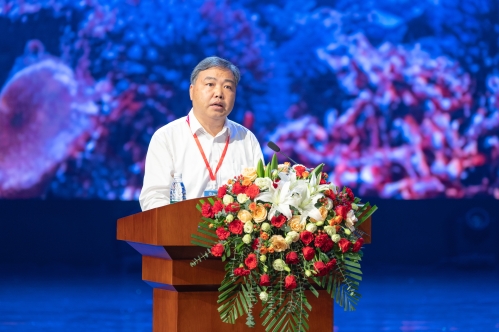 肖建庄在讲话中充分肯定了海洋学院10年来在学科发展、人才培养、科学研究、社会服务等方面取得的成绩。他指出,海洋学院自2014年9月成立以来,始终坚持以培养高水平研究型海洋科学人才为己任,为国家海洋战略和地方经济发展作出了贡献,已成为广西大学办学的一大特色,珊瑚礁成为学校研究的一大特长。海洋学院相继承担国家自然科学基金重点项目、重大项目课题和近7,000万元的中央海洋生态修复项目等一系列有关珊瑚礁研究的科研项目,并出版了国内唯一的关于珊瑚礁的综合性教材《珊瑚礁科学概论》,相关科研成果荣获广西自然科学一等奖。参与撰写的咨询报告为南海珊瑚礁生态环境保护与岛礁工程规划选址提供了重要科学依据,为服务国家政治外交大局提供了有力支撑。肖建庄希望海洋学院深入学习贯彻党的二十大精神,坚持以习近平新时代中国特色社会主义思想铸魂育人;加强科研创新,瞄准国家和地区的重大战略需求,形成以珊瑚礁系统科学为中心,多学科方向交叉与协同发展的局面,更好地服务“海洋强国”战略;积极落实国际化发展战略,发挥广西地缘优势,讲好中国—东盟之间的海洋与珊瑚礁故事,为推动一带一路和中国—东盟战略合作伙伴关系作出新的贡献。