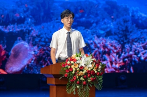 嘉宾代表、自然资源部第四海洋研究所副所长兼总工程师徐兴永,兄弟学院代表广西大学土木建筑工程学院党委书记陈立华分别致辞,表达了对海洋学院成立10周年的祝贺,肯定了双方在合作创新、共同发展方面所取得的突出成绩;校友代表、广西壮族自治区钦州市海洋局党组成员、副局长张栋,教师代表张媛媛、学生代表孙天奕分享了与海洋学院的温情故事,表达了对海洋学院的感谢与祝福。