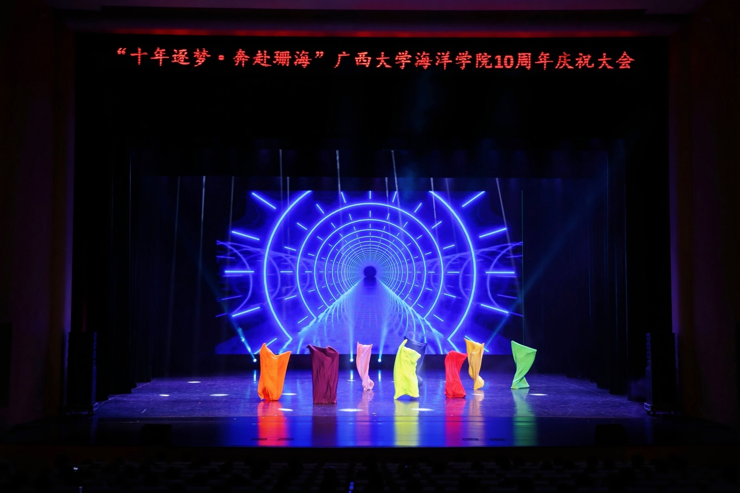 9月21日,“十年逐梦·奔赴珊海”广西大学海洋学院成立10周年文艺演出在广西大学汇学堂举行。文艺演出以“蓝色梦想”为创作核心,巧妙地融合了朗诵、歌舞、音诗画等多种艺术形式,生动展现海洋学院十年辉煌历程,展望未来宏伟蓝图。