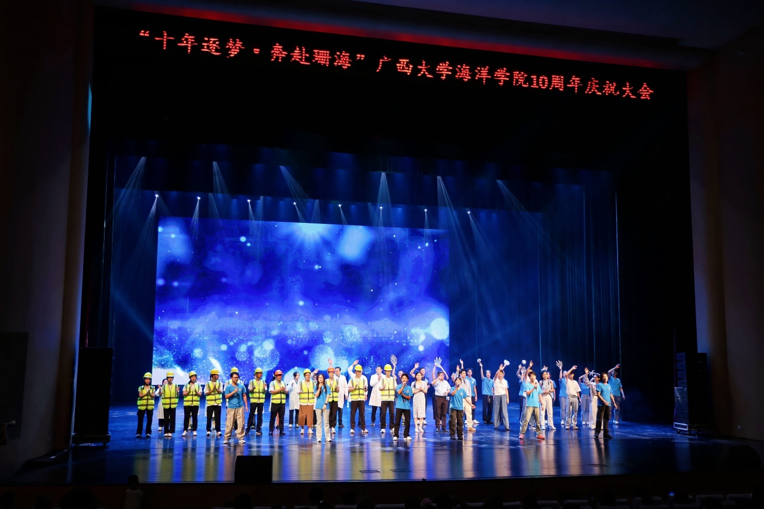 整场文艺演出不仅是一场视听盛宴,更是一次精神的洗礼。展示了我院十年来的辉煌成就,激励着每一位海院人继续在海洋科学的道路上砥砺前行,为实现海洋强国梦贡献力量。随着演出的圆满结束,广西大学海洋学院也开启了下一个十年的新征程。