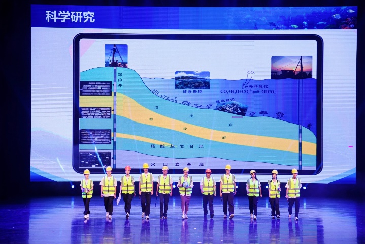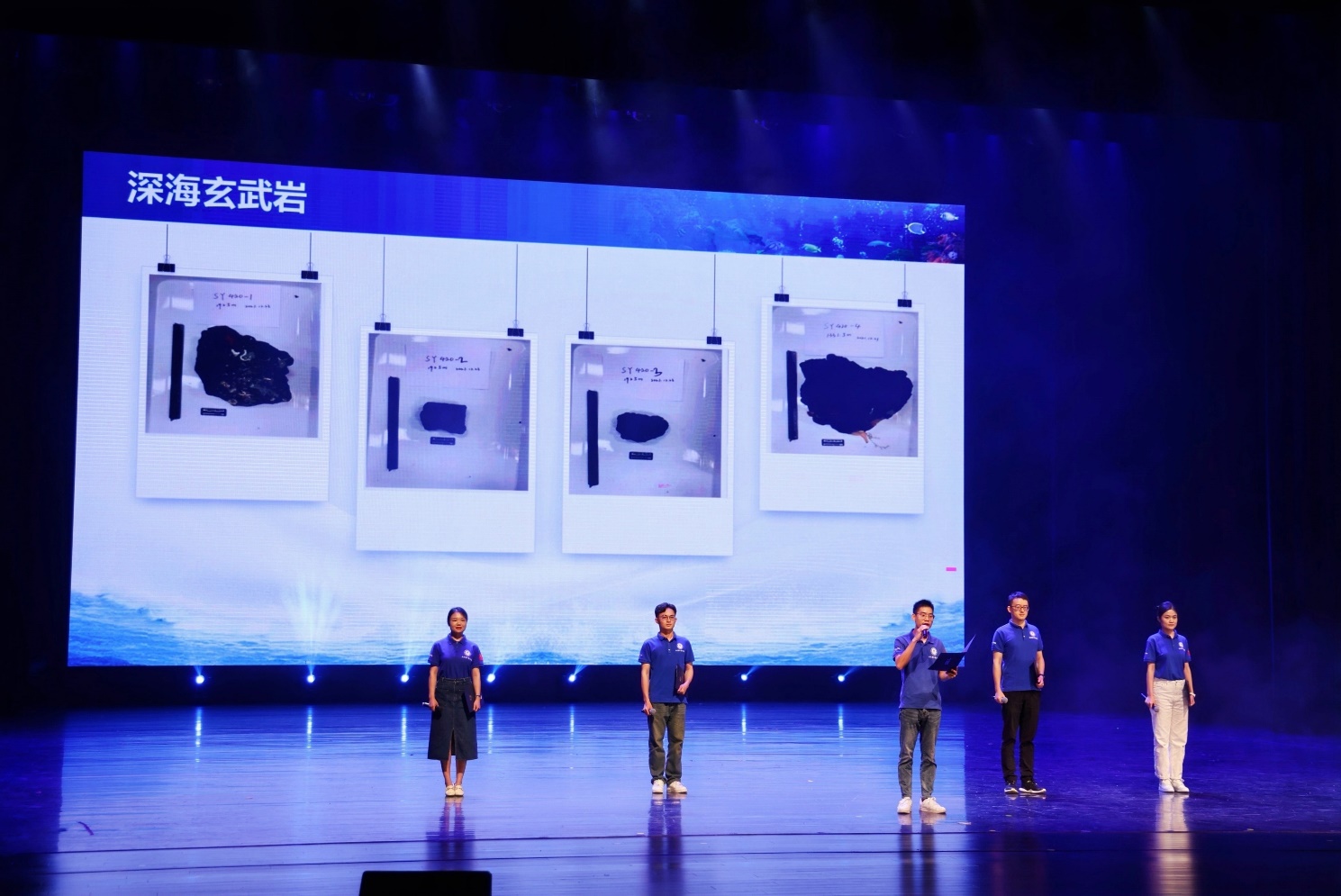 第二篇章《梦想航迹 探索无垠》中,由“蓝色梦想”科考队与科普队的队员们带来的《蓝色梦想:航迹中的珍贵记忆》和《蓝色科普:征程上的启示之旅》,通过展示一系列如记录工作瞬间的照片、见证实验成功的实验器材等普通但具有珍贵意义的物件,讲述了过去那些默默耕耘、不忘初心的岁月。这些物件不仅是追求卓越的指南针,也是未来无限可能的灵感源泉,鼓励师生们继续探索未知、照亮前行。现代舞《快乐的小海鲜》则以海洋生物的灵动与自由为灵感,通过同学们的生动表演,带领观众一同潜入深海,感受海洋生物的快乐与和谐。