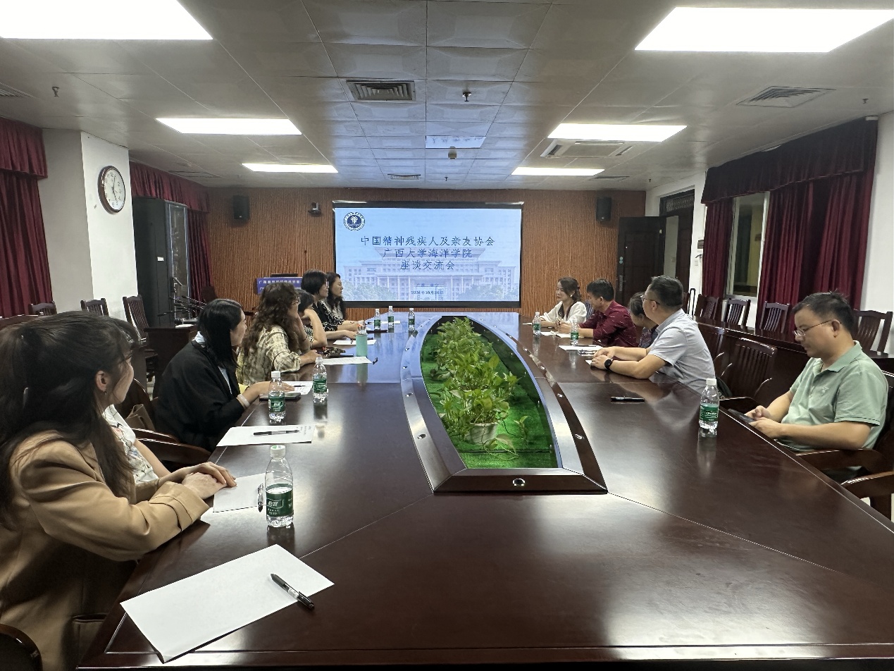 赵新玲对我院在科研、教学、公众海洋意识培养以及科普教育等方面的工作表示高度赞赏,并对我院关爱残疾人群体,推动残健融合的创新尝试给予充分肯定。双方围绕中国残联、教育部等七部委共同印发的《孤独症儿童关爱促进行动实施方案》,就如何结合专业和行业优势,进一步完善孤独症儿童关爱服务工作机制、提升服务能力水平及保障条件等议题展开了深入交流。赵新玲强调,中国精协将与广西大学海洋学院加强合作,共同推进中国精协科普示范基地和全国星星驿站的建设,为孤独症群体及其亲友,以及特殊教育工作者提供更加全面、专业的支持与服务。
