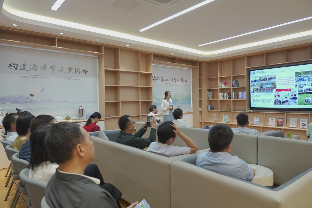 参观结束后,双方代表展开了深入的座谈交流。在座谈会上,中心站综合技术与总工室主任邓琰向学院一行介绍了中心站在海洋水质监测、生态监测、碳监测以及海洋监测技术、科研科普等方面工作情况和取得的成果。双方就如何共同提高海洋生态环境监测能力和科研水平,加强党建共建、业务交流、人才培养和公益科普合作,实现资源优势互补、合作共赢等方面进行了深入的交流和探讨,就下一步推动合作协议内容落实落地达成了共识。