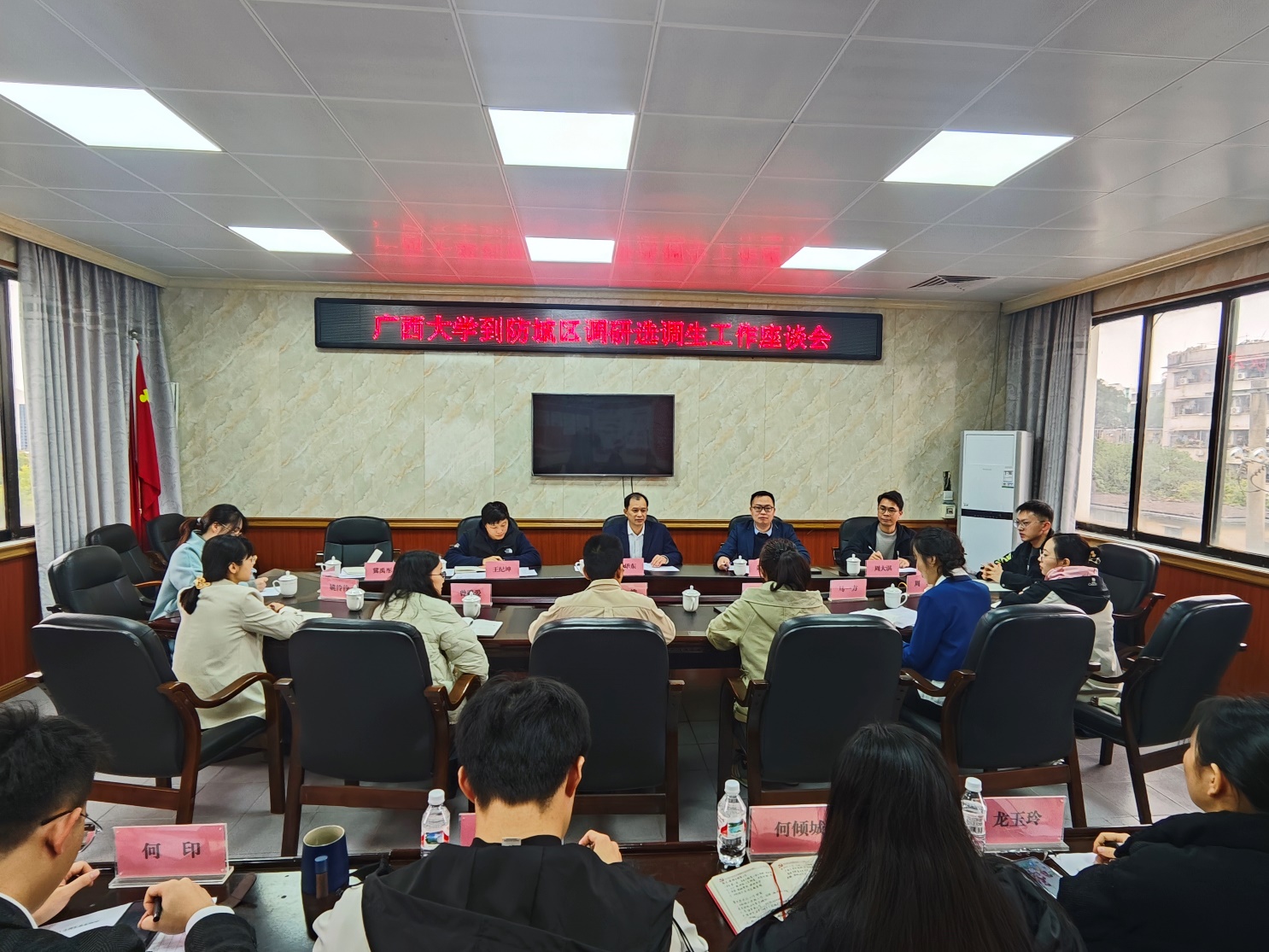 1月15日,根据学校党委有关工作安排,我院党委书记秦华东带队赴防城港市防城区走访选调生校友,并在防城区委组织部召开座谈会。防城区委组织部常务副部长苏维主持会议。学院党委副书记、纪委书记黄学勇、校党委组织部王纪坤、防城区委组织部副部长何印,资源环境与材料学院辅导员周大淇、冀禹彤,以及我校11名选调生校友参加会议。