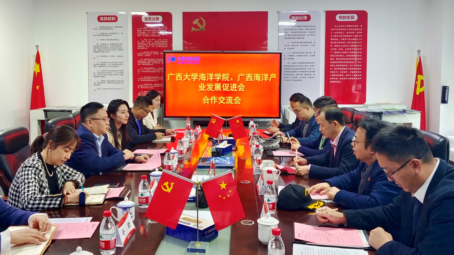 1月21日,学院党委书记秦华东一行赴中教(广西)科技集团有限公司调研交流。广西海洋产业发展促进会执行会长覃孟生、秘书长刘日勇、副秘书长徐华深,院学术带头人徐向荣、党委副书记黄学勇、副院长王瑞陪同调研。