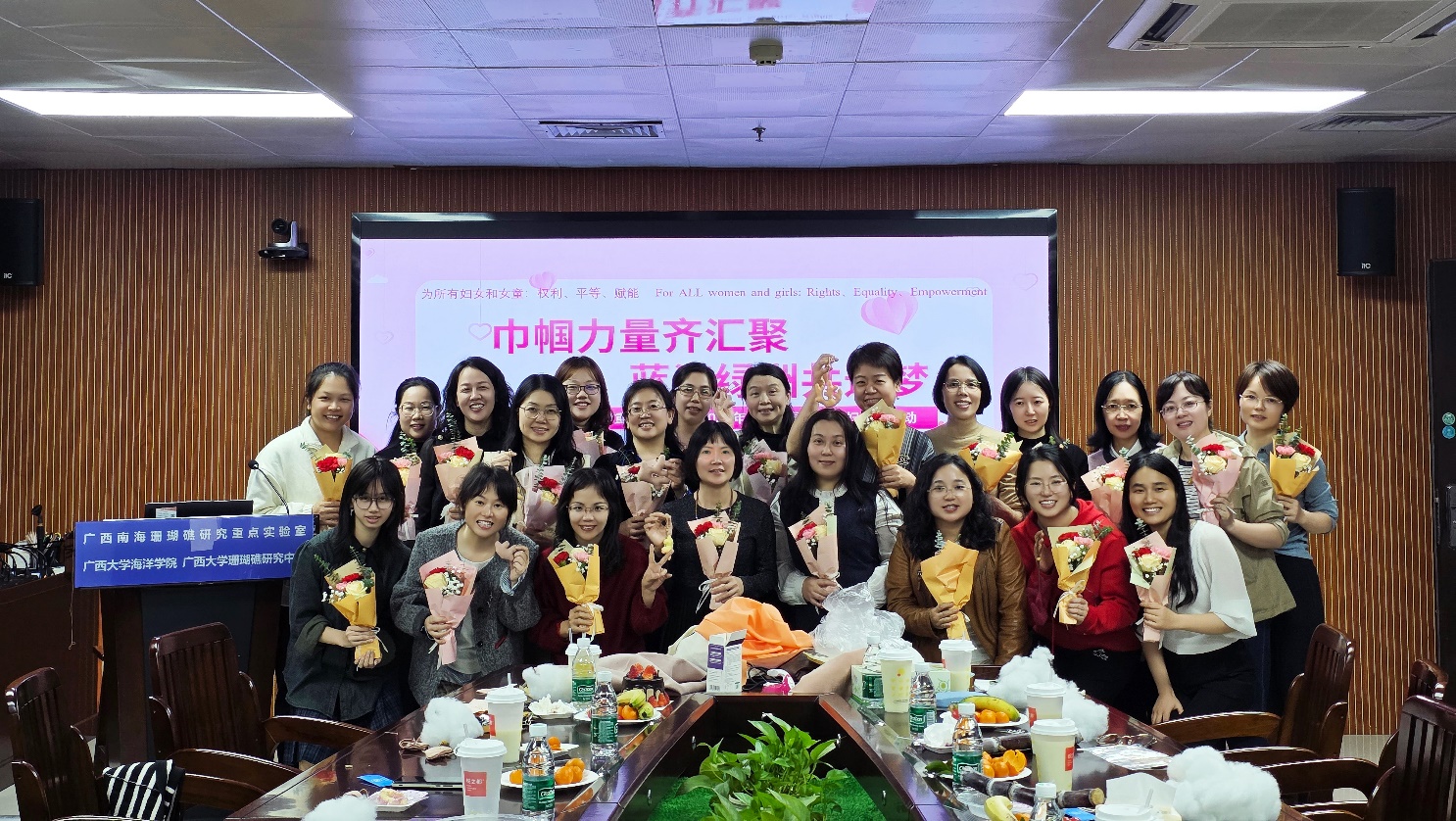 在第115个“三八”国际劳动妇女节来临之际,广西大学海洋学院与亚热带农业生物资源保护与利用国家重点实验室于3月4日下午联合举办“巾帼力量齐汇聚,蓝海绿洲共逐梦”主题庆祝活动。来自两个单位的巾帼齐聚一堂,通过科技文创体验与学术交流,共同展现新时代女性科研工作者的使命担当。