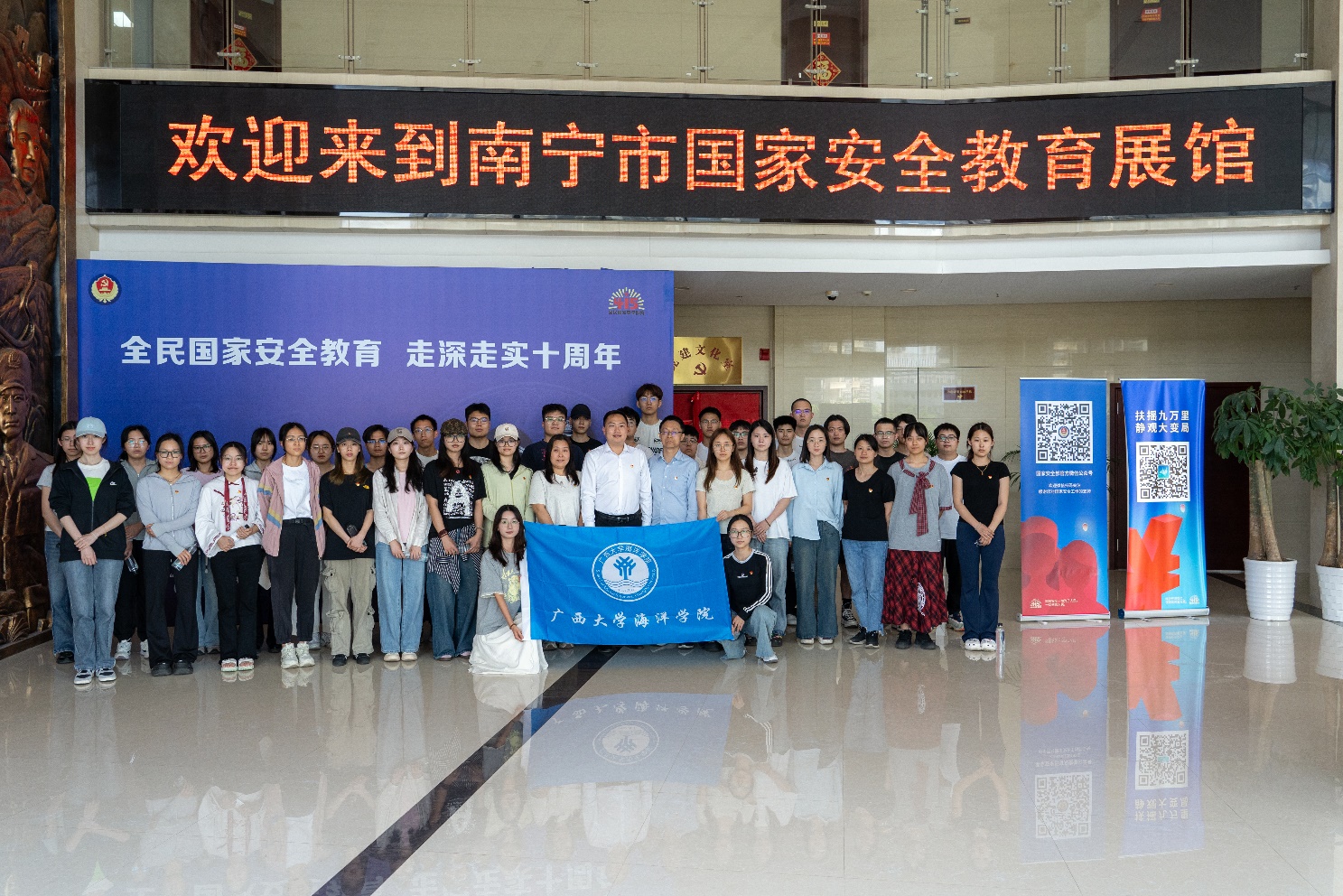 2025年4月15日是第十个全民国家安全教育日,海洋学院党委积极响应时代号召,紧扣“全民国家安全教育走深走实十周年”这一主题,深入贯彻落实习近平总书记关于加强国家安全教育的重要指示精神,精心组织全体学生党员赴南宁市国家安全教育展馆,开展了一场别开生面的全民国家安全教育主题党日活动。