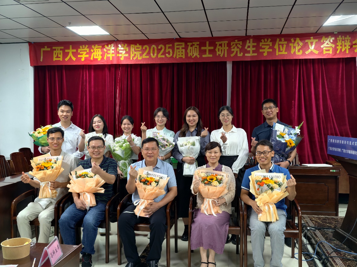 李志聪、陈锦连、包泽铭、陈俊伶、黄智华、杨雅婷、蒿若星同学在海洋学院215会议室进行答辩,由广西海洋研究院何斌源研究员担任答辩委员会主席,我院王广华副教授、苏宏飞副教授、陈小燕副教授担任答辩委员会委员,覃祯俊博士担任答辩委员会秘书。
