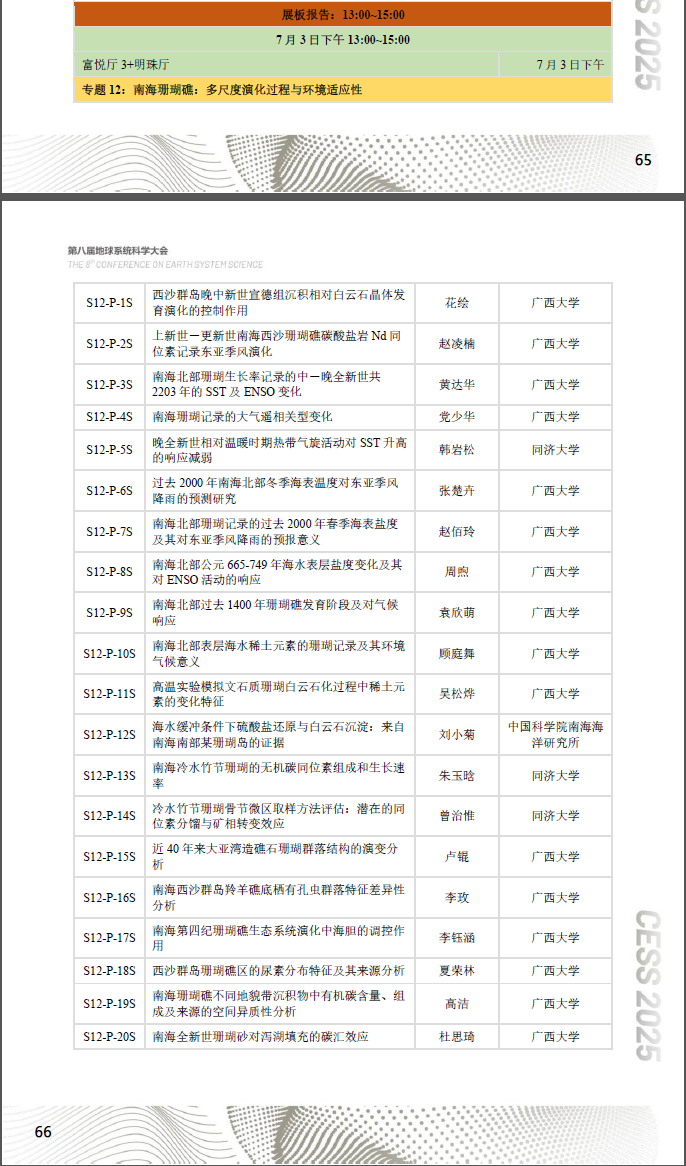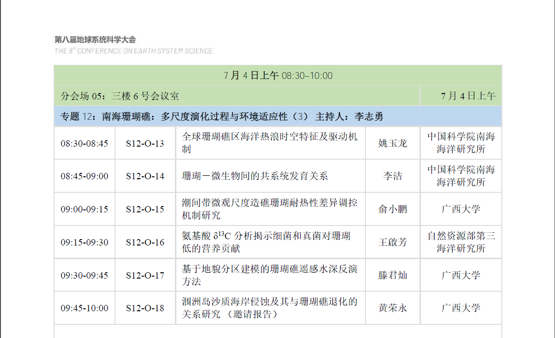 我院余克服教授作为第一召集人组织第八届地球系统科学大会“南海珊瑚礁”专题