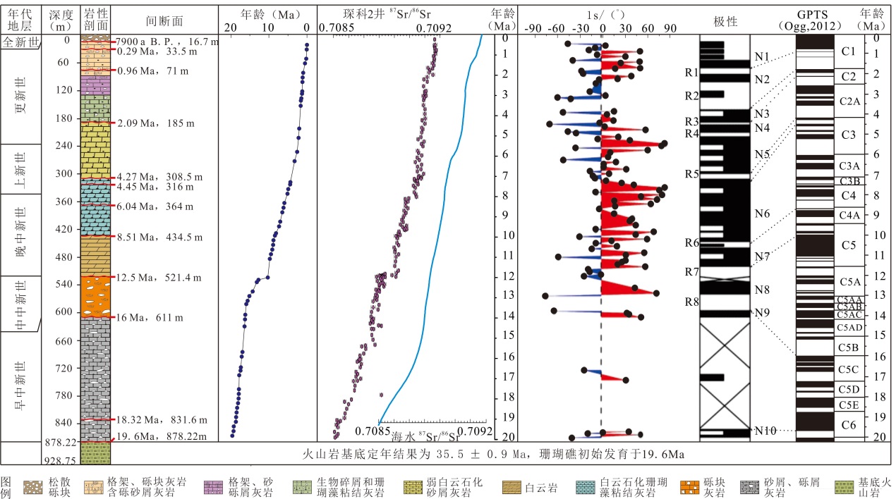 Fig. 2 Chronological sequence of coral reef carbonate strata from Chenke-2 Well